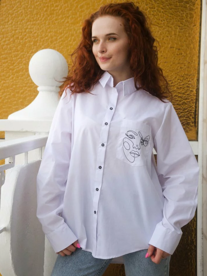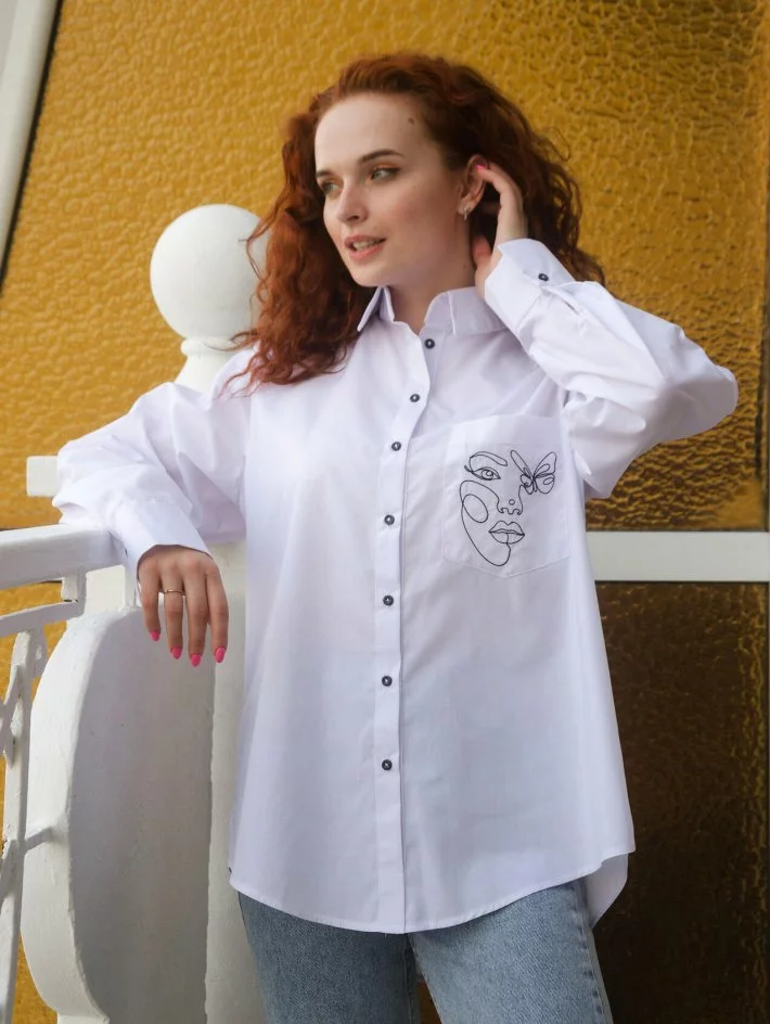 з вишивкою. Тканина – сорочкова бавовна. Сорочка має силует