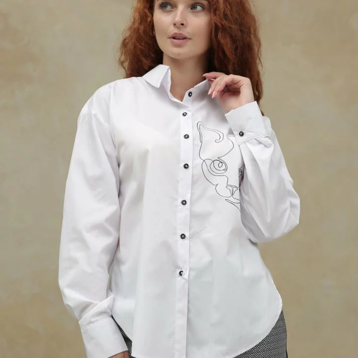 Класична блуза з вишивкою Кота, виконаної за технікою "в один