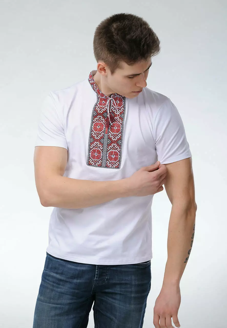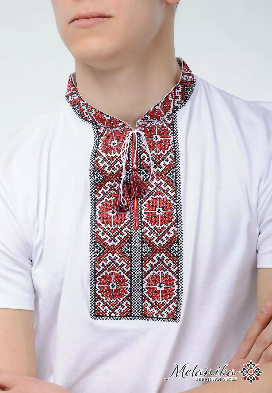 Білосніжна чоловіча вишита футболка "Гуцульська" точно стала уособленням цього прекрасного небесного світила. До Вашої уваги абсолютно ексклюзивний вишитий орнамент. Його нанесено за допомогою машинної техніки вишивки. Кожен стібок надійно закріплений та рівномірний. Ви можете чітко побачити кожен хрестик. Домінуючим тут є бордові нитки, а скріплюючими елементів є візерунки чорною ниткою.