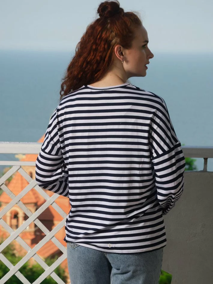 швом і оригінальними розрізами. Спущена лінія плеча та вільний крій