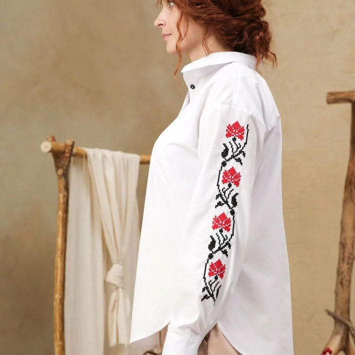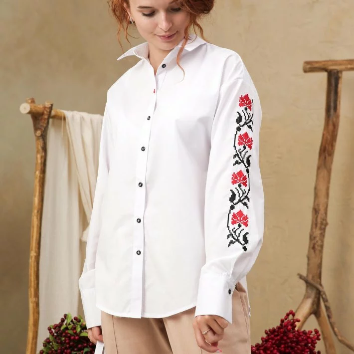 контрастними гудзиками. Вишивка по центру рукава - класичні