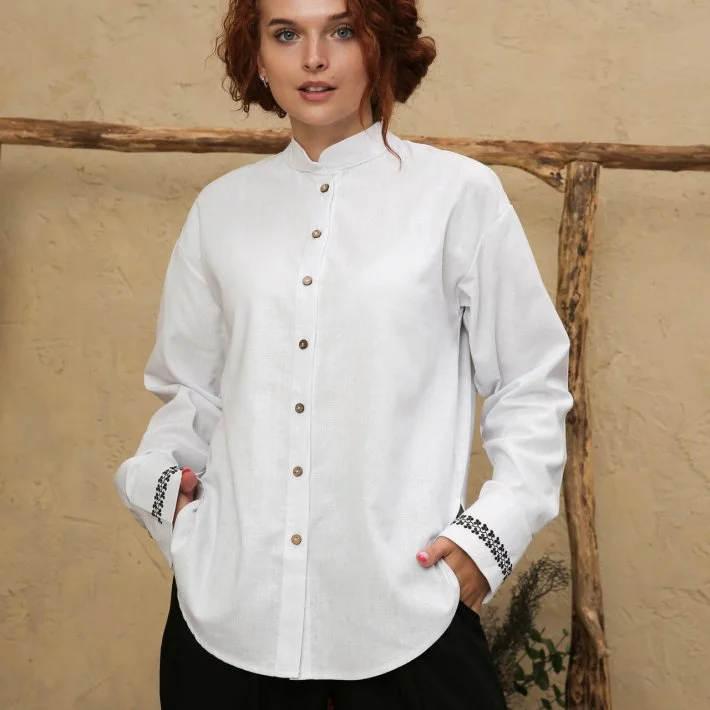 Класична сорочка оверсайз крою з довгим рукавом і великими