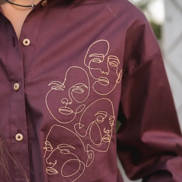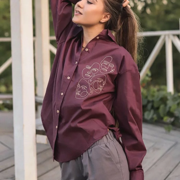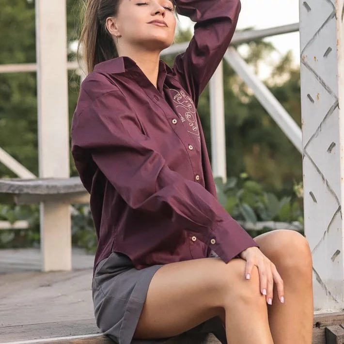 Класична сорочка в бордовому кольорі, оздоблена вишивкою.