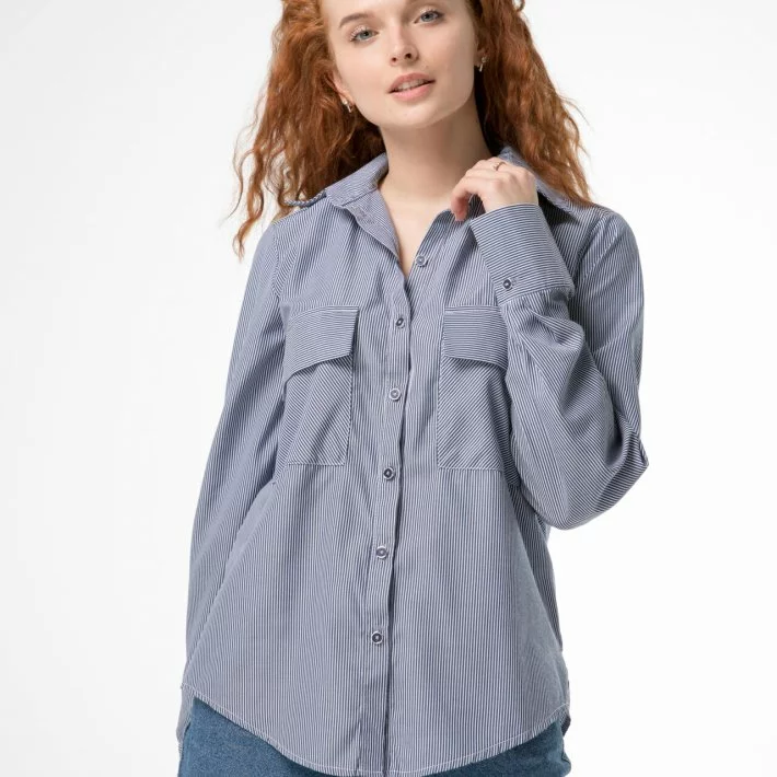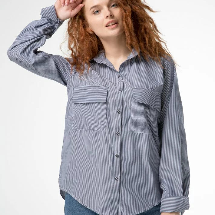 Класична блузка з двома кишенями на лінії грудей, попереду