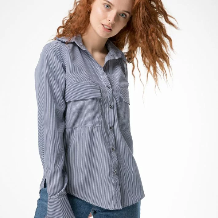 Класична блузка з двома кишенями на лінії грудей, попереду