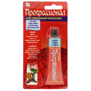 Клей для профессионального ремонта обуви, кожаных изделий, резиновых предметов, тканевых и синтетических материалов. Имеет высокую прочность и водостойкость. Склеивает за пять минут, максимум сутки для полной фиксации.