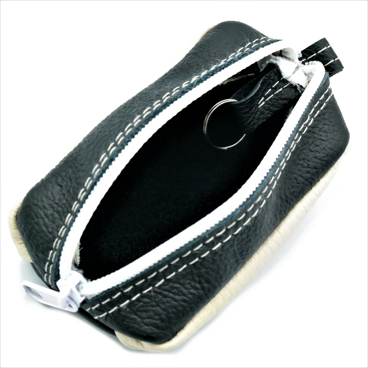 Ключница кожаная Weatro Чёрно-бежевая klch-0012