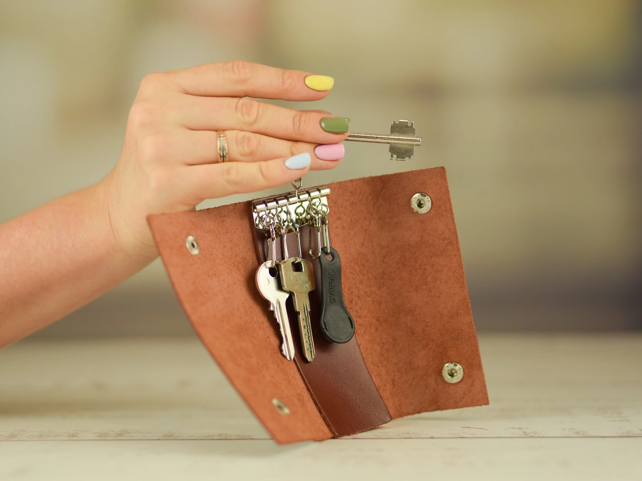 Ключниця велика. підходить для довгих ключів. Закривається на дві кнопки. Всередині є 6 кілець для 6 ключів. Розмір: 13,5х6х2 см.