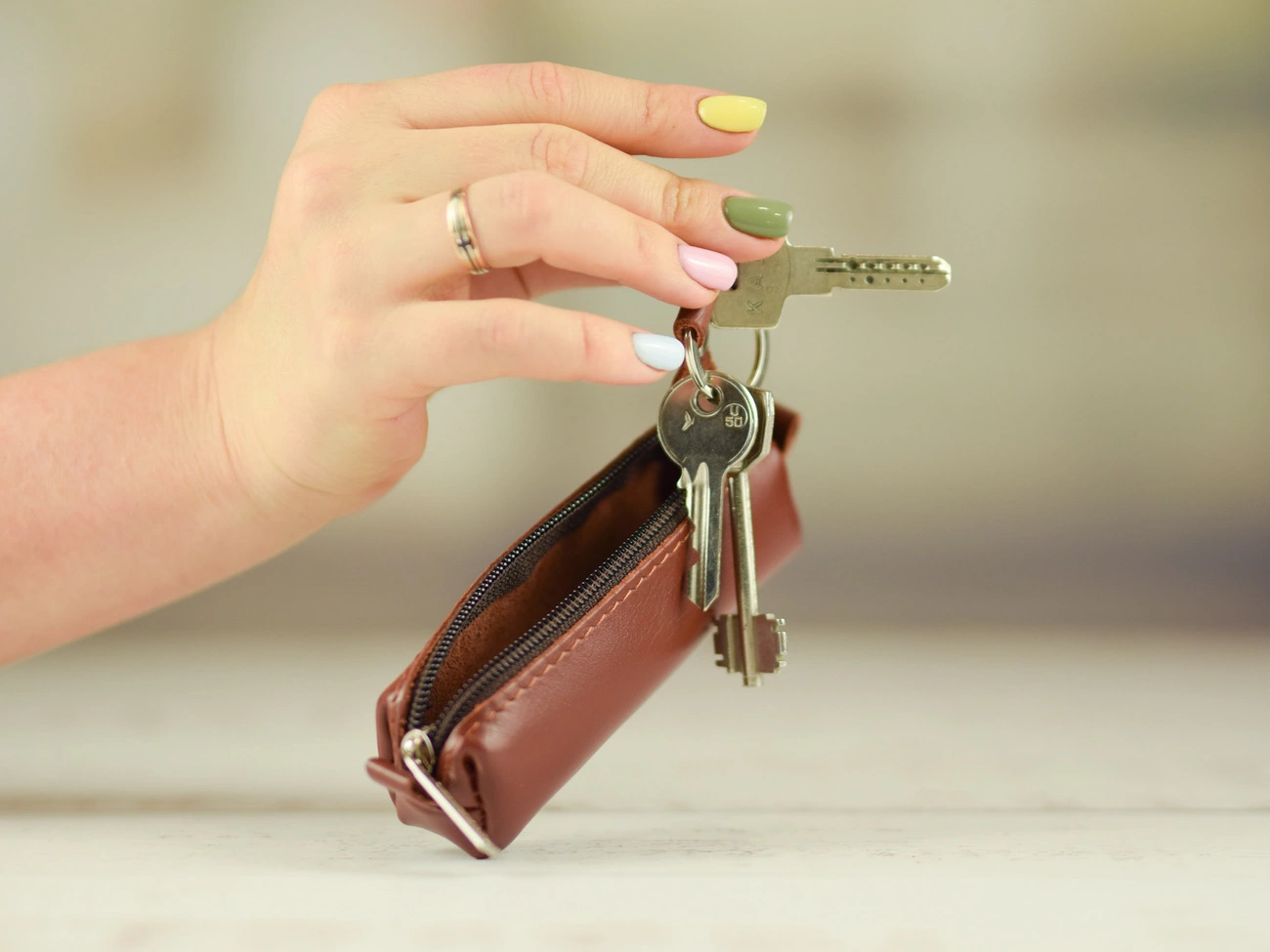 Ключниця закривається на блискавку. Усередині металеве кільце