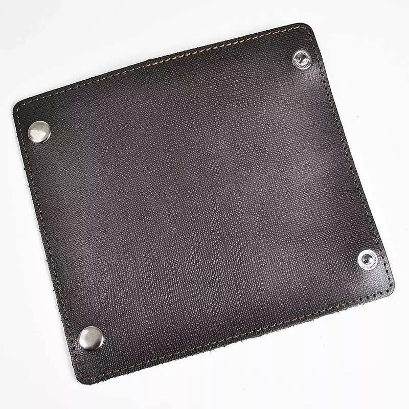 При пошитті аксесуара застосовується натуральна шкіра саф'яно (Saffiano), за своїми властивостями щільна та досить товста (1,5мм), що сприяє утриманню форми виробу на весь термін експлуатації.