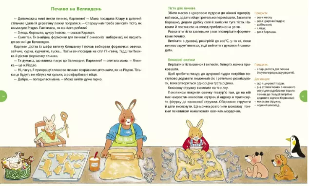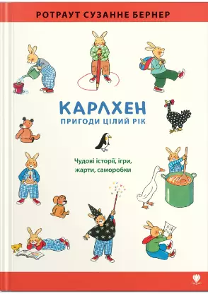 Зайчик Карлхен — найкращий друг малюків. Він вивчає назви місяців і пізнає всі принади весни, літа, осені та зими: рухливі ігри, смачні рецепти, веселі віршики та значення свят. Зайчик слухає казки, вчиться чемно поводитися в дитсадку, відгадувати загадки, робити саморобки та силу-силенну інших цікавих справ. А разом із Карлхеном цих премудростей вчаться й маленькі читачі. Улюблений персонаж малюків у всьому світі повертається з новими сюрпризами в дотепній книжці німецької письменниці та ілюстраторки Ротраут Сузанне Бернер. Веселі віршики адаптували для українських малят Сашко Подоляк та Олександра Григоренко. На читачів чекає ще й додатковий сюрприз: до видання увійшли чудові вірші улюбленого поета українських дітлахів Григорія Фальковича. Домашня книга на кожен день. Історії, вірші, ігри, кулінарні рецепти, ідеї для творчості, поради щодо садівництва, магічні трюки. Сімейна книга на цілий рік. Що відбувається в природі навесні? Ігри на літо. Збирання врожаю, збирання грибів та польоти повітряних зміїв восени. Зимові розваги надворі й удома, цікаві оповідки. Навчатися граючись — це найбільше задоволення Карлхена: арифметика, назви місяців, літери, час і цікаві факти про рослини й тварин довкола нас. Скарбниця, повна кольорових картинок, практичних ідей та красивих історій.