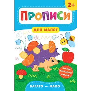 Це видання допоможе засвоїти й опрацювати поняття «багато — мало». Виконуючи завдання, малюк навчиться визначати та співвідносити між собою кількість предметів, наведе пунтирні лінії, розфарбує малюнки та попрацює з наліпками. Таким чином дитина підготує руку для майбутньої роботи з прописами для дошкільнят. Видання призначене для спільної роботи дітей віком від двох років з батьками.