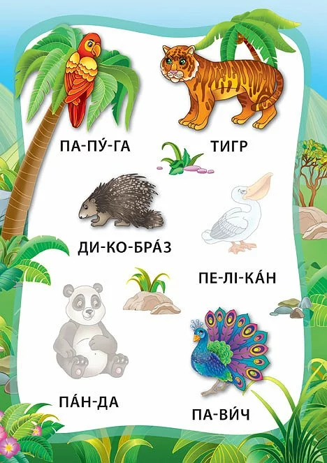 Ця книжка допоможе малюкам навчитися читати по складах і запам’ятати назви тварин, розвинути дрібну моторику пальців рук, зорову пам’ять й увагу. Видання містить яскраві ілюстрації, тематичні наліпки й підписи до кожного малюнка. Крім того, слова поділені на склади та надруковані зручними для сприйняття великими літерами. Усе це зробить складний процес читання легким і захопливим.