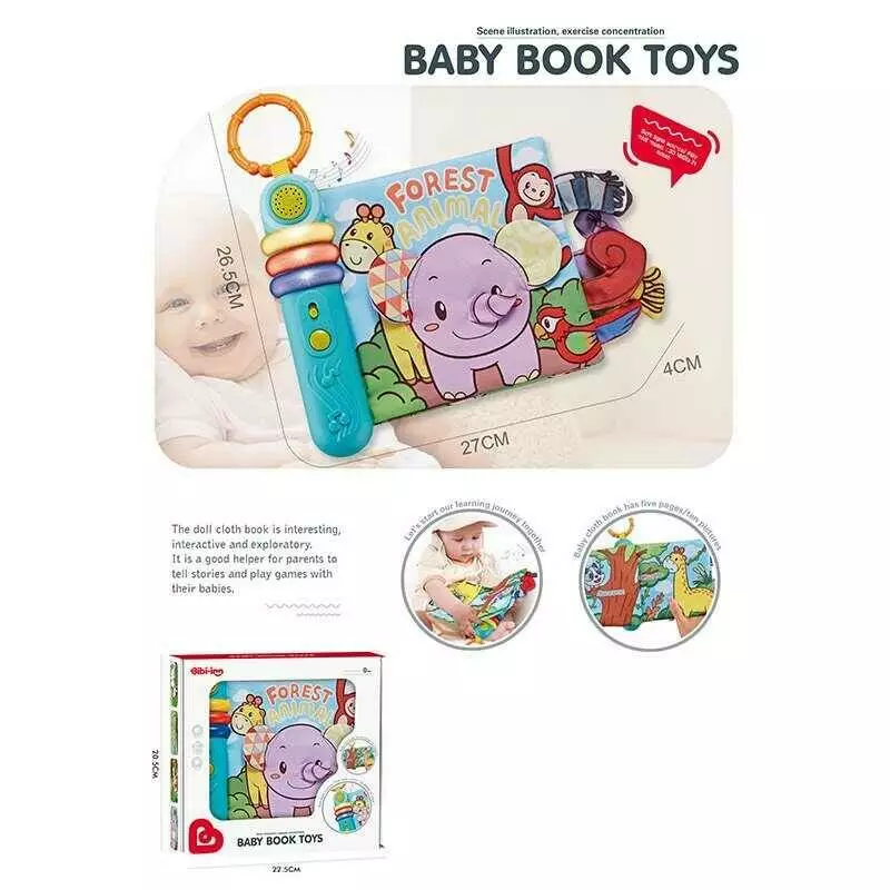 М’яка музична книжечка 6071 (24) тваринки, на батарейках, мелодії, реж гучності, підсвітка, м`які сторінки, 5 сторінок, шелесткі елементи, в коробці