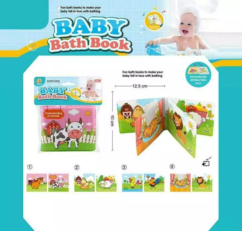 Книжечка для ванни 2022-106 (408/2) "Тварини", написи англійською мовою, водонепроникні сторінки, пискавка, в пакеті