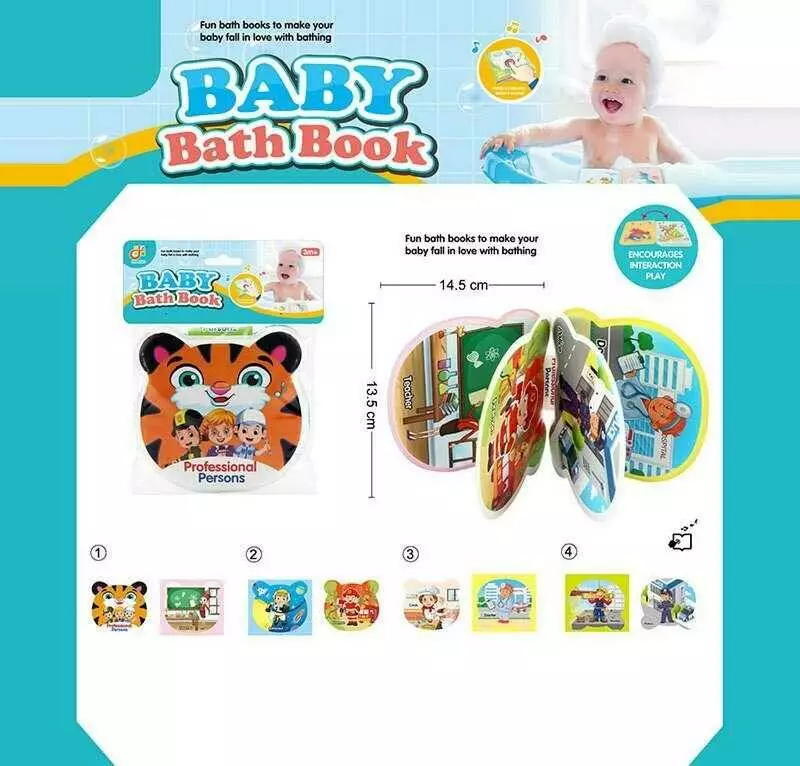 Книжечка для ванни 2022-113 (408/2) "Професії", написи англійською мовою, водонепроникні сторінки, пискавка, в пакеті