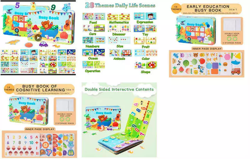 Логічна книжка C 73235 (132) 14 сторінок, картонна, елементи на липучках, цифри, кольори, тварини, геометричні фігури, в пакеті