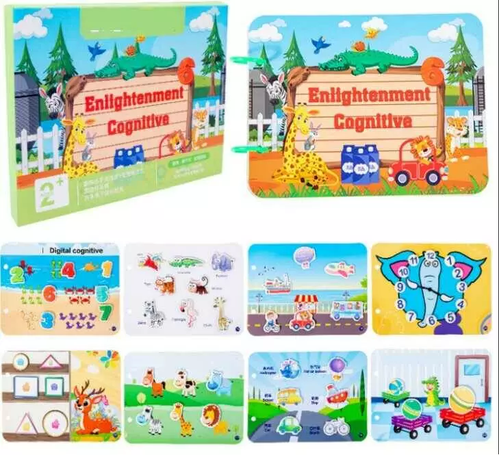 Логічна книжка C 73245 (60) кілька картонних сторінок, липучки, цифри, годинник, транспорт, форми, тварини, кольори, в коробці