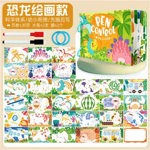 Логічна книжка C 76603 (120) 16 аркушів, 30 сторінок, тварини, динозаври, домальовування контурів, 2 маркери для білої дошки, в пакеті