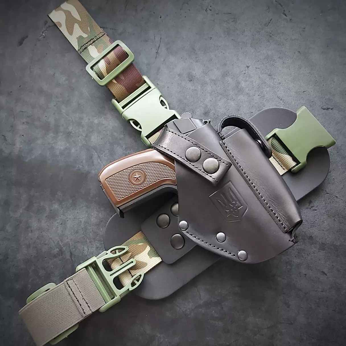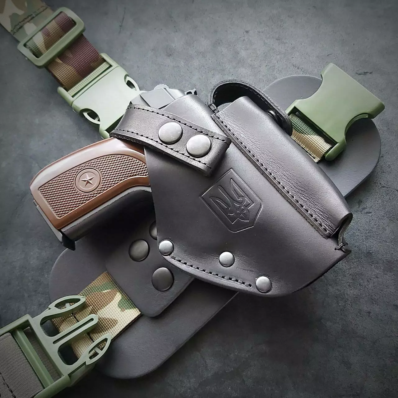 Кобура на стегно під ПМ| шкіряна| мультикам з гербом