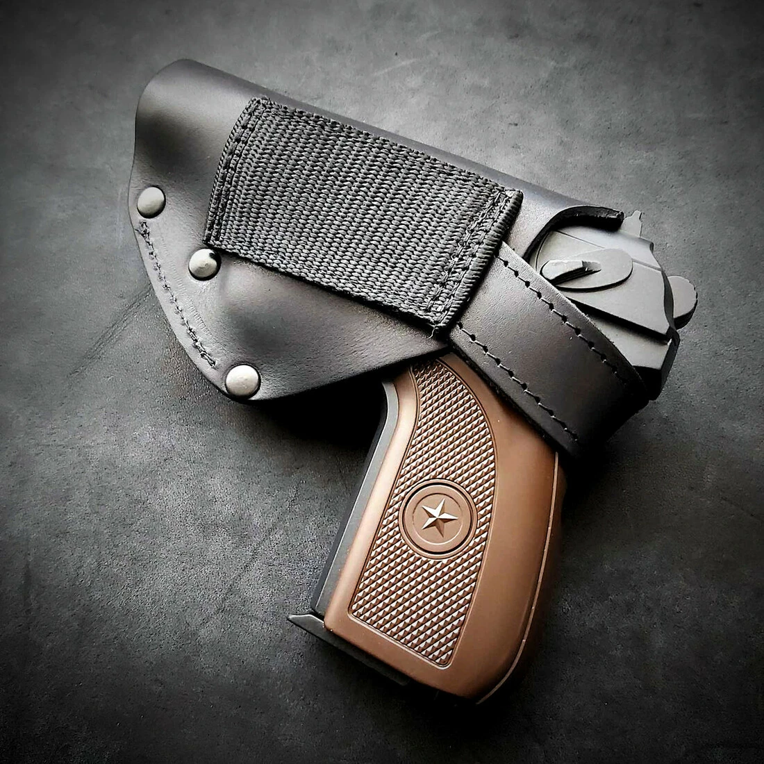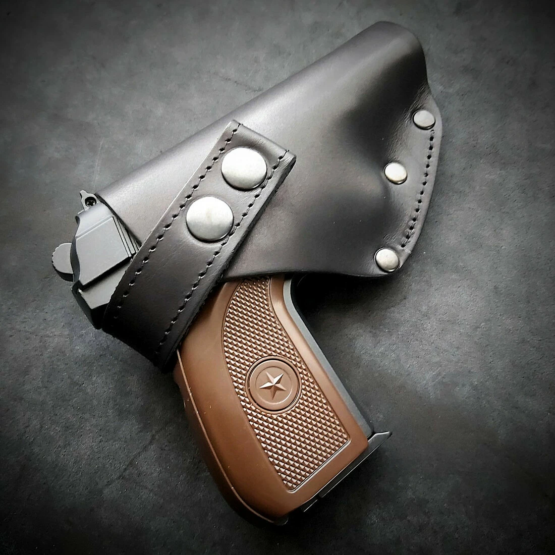 Кобура поясна, шкіряна під ПМ (Макаров). Виконана із щільної шкіри 2.5 мм завтовшки. Колір чорний