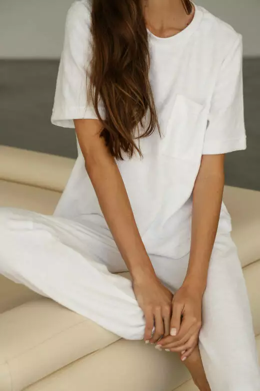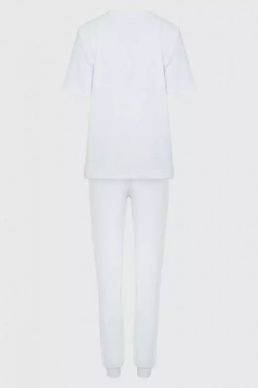 Дизайн костюма продуманий до найменших деталей, щоб ви могли насолоджуватися не лише комфортом, але й стильним виглядом. Білий колір підкреслює витонченість і чистоту образу, додаючи йому нотки елегантності і розкоші. Ви будете почуватися комфортно і впевнено, проводячи час вдома у цьому чудовому комплекті.