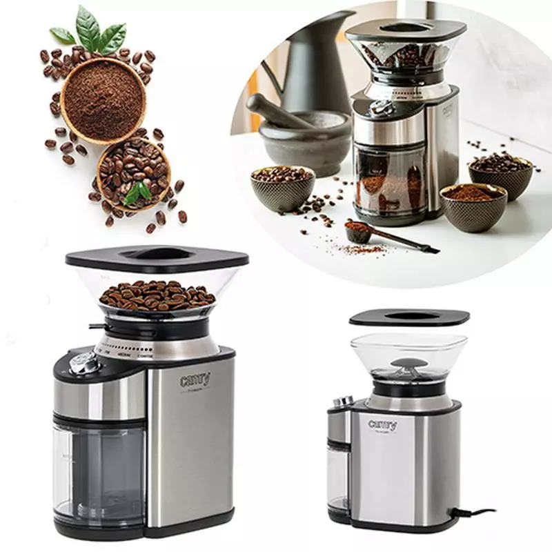 Электрическая кофемолка с коническим жерновом мощностью 200 Вт для любителей ароматного свежемолотого кофе. Устройство отличается компактными размерами и современным дизайном. Он работает тихо, на высокой скорости и защищен от включения без крышки. Самым большим преимуществом этого типа кофемолки является автоматизация процесса измельчения и корпус из нержавеющей стали. Любители кофе, например эспрессо, капучино или латте, также оценят возможность регулировки степени помола. Каждый хочет, какой кофе нам больше нравится, наша кофемолка позволяет выбрать одну из 16 ступеней помола. Более того, полная емкость гарантирует приготовления 12 чашек кофе.