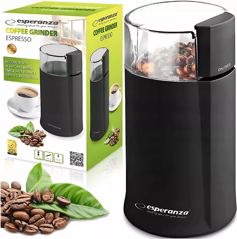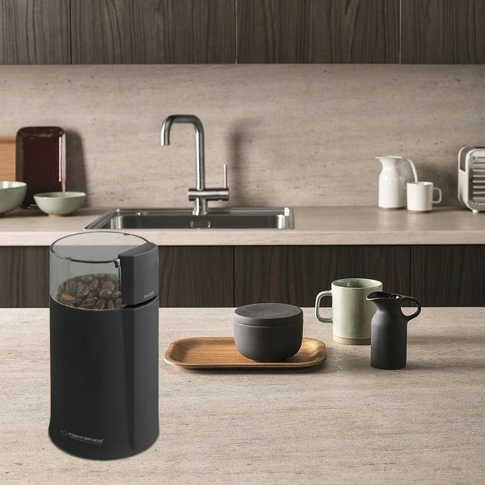 Начните свой день с ароматного свежего молотого кофе прямо перед тем, как заваривать. С нашей кофемолкой вы сделаете это быстро и просто, а толщина измельченных бобов будет соответствовать вашим вкусам. Создан специально для гурманов кофе, для которых кофе - это не просто напиток, а способ получить прекрасное настроение с самого утра. Кофемолка также будет отличным помощником на кухне при измельчении специй, таких как перец или семена и орехи. Его современный и эргономичный дизайн и небольшой размер подойдут для любой кухни.
