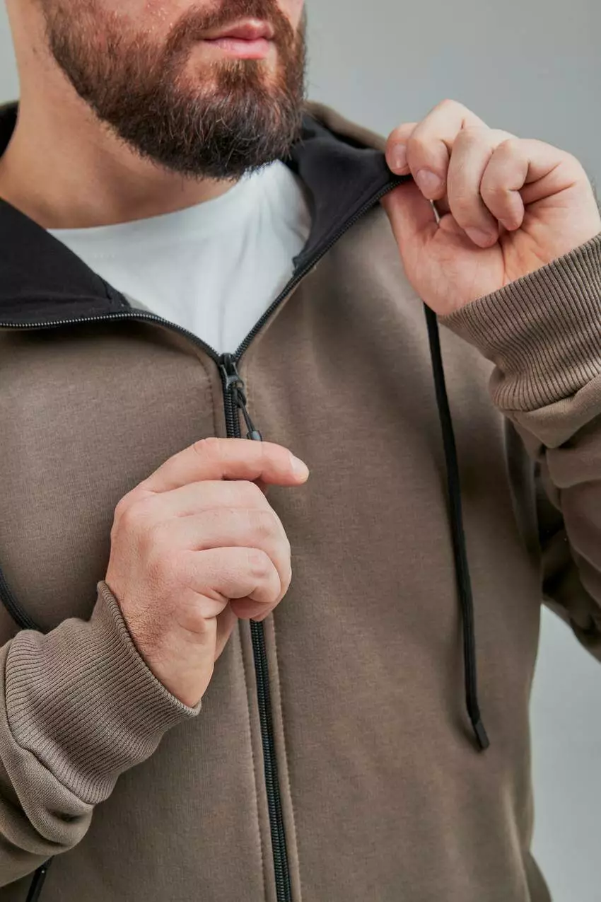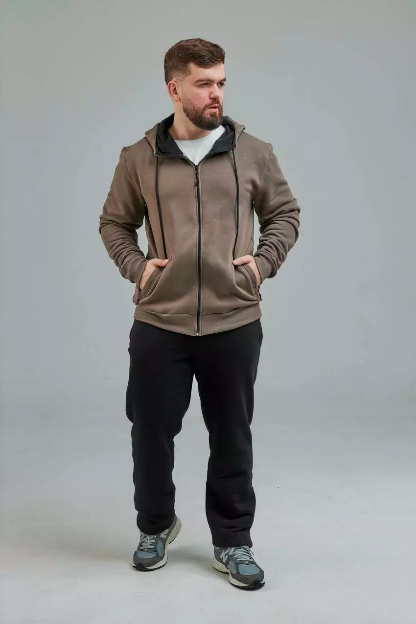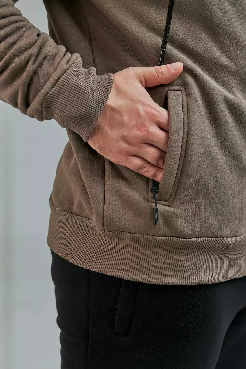Чоловіча кофта з капюшоном на замку та кишенями Стильна чоловіча