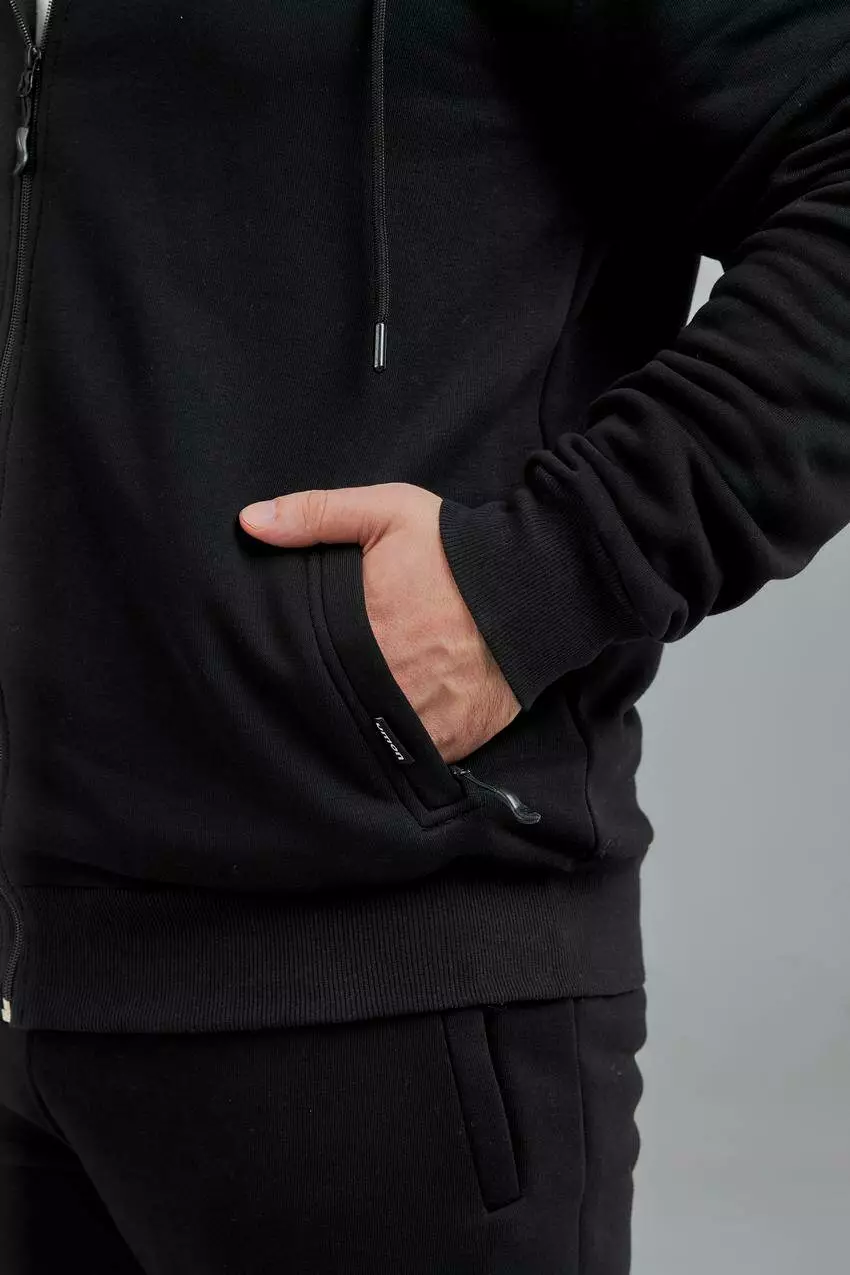 Чоловіча кофта з капюшоном на замку та кишенями Стильна чоловіча