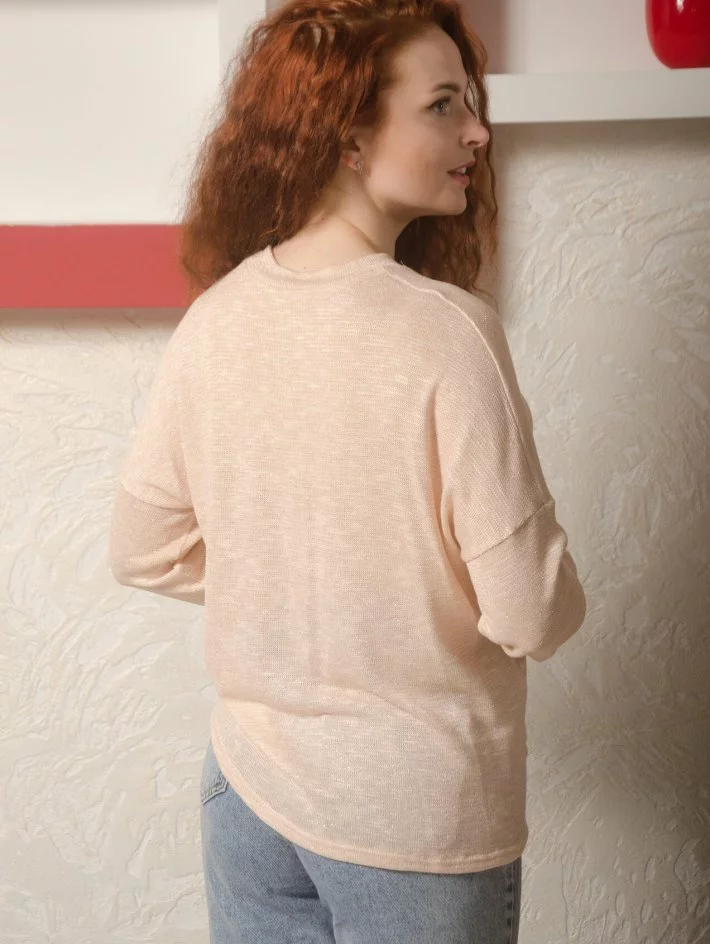 Кофта зі спущеною лінією плеча та оригінальним боковим швом з