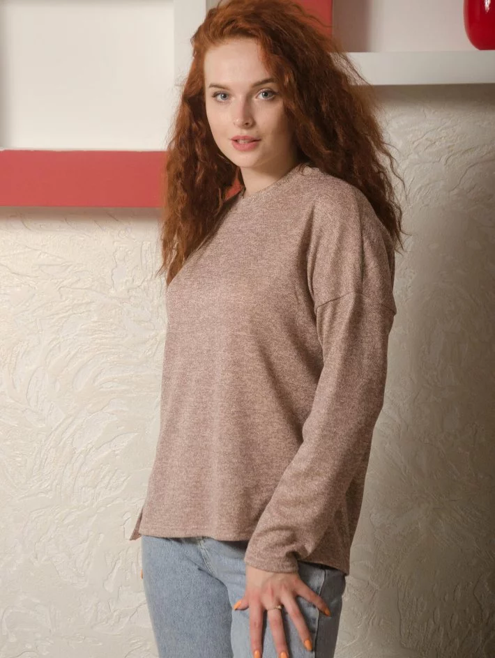 Кофта зі спущеною лінією плеча та оригінальним боковим швом з