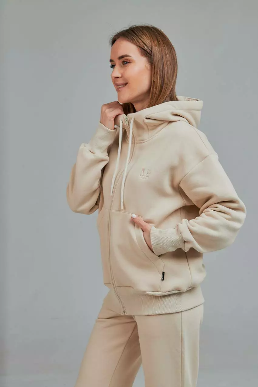 Жіноча кофта з капюшоном на замку та накладними кишенями Практична
