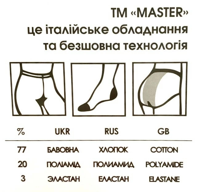 Склад: Бавовна 77%., Поліамід 20%., Еластан 3%.