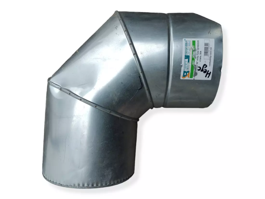 Коліно Вент Влаштуй 90° к/оц 1 мм ф160/220 нержавіюча сталь 304. Двостінне сендвіч коліно 90°