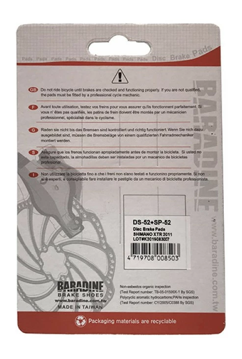 Колодки під дискове гальмо Baradine DS-52+SP-52