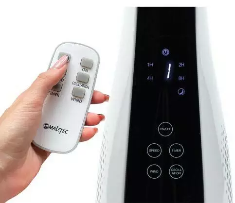 Колонний вентилятор замість класичного оснащений турбінним вентилятором, який обдуває всю висоту вентилятора.