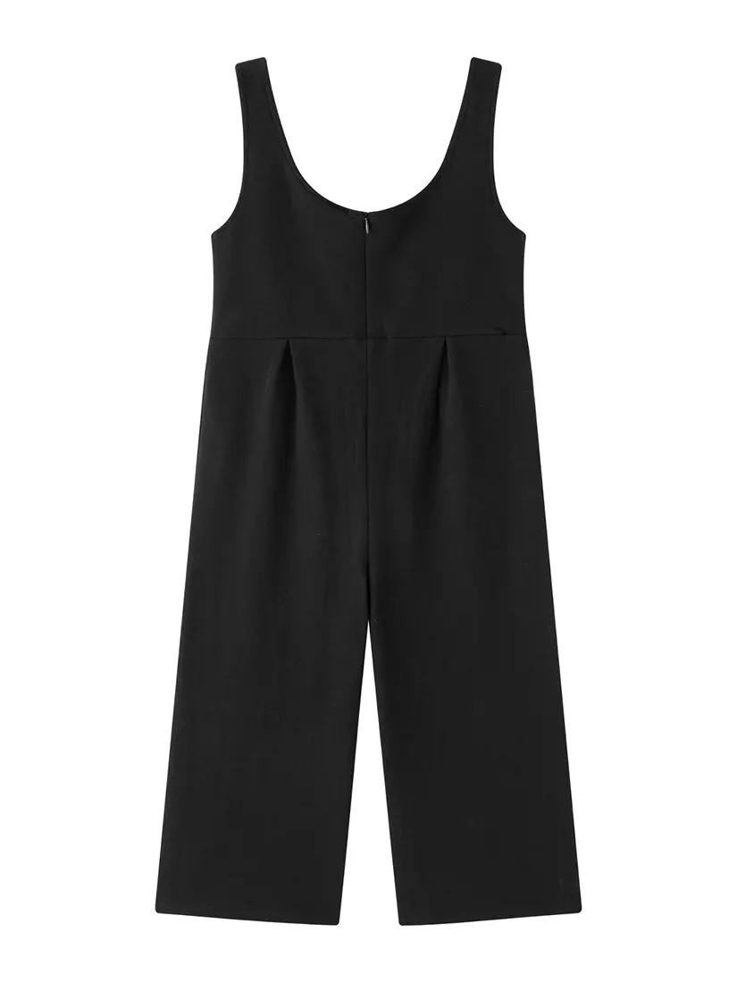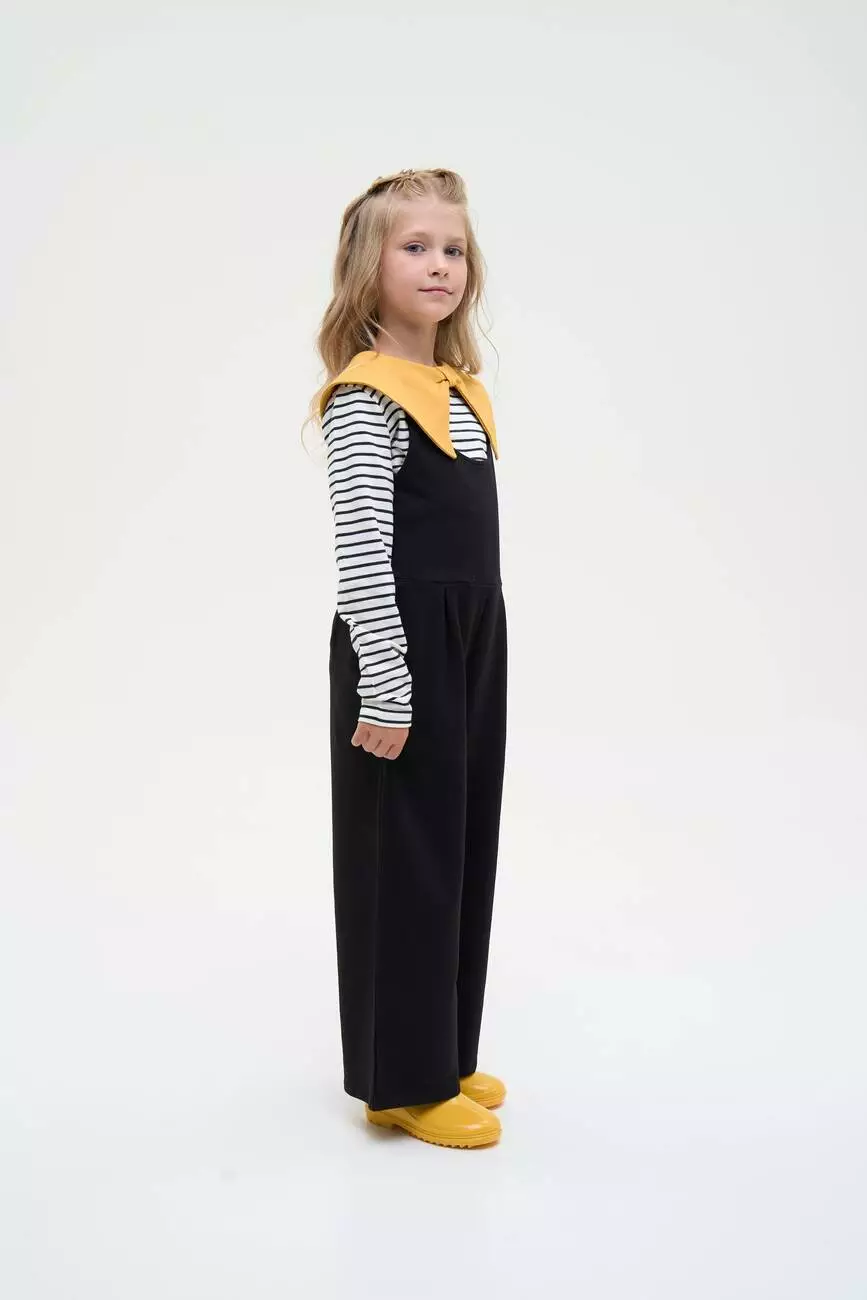 Зустрічайте нову колекцію - колаборація брендів YUMSTER і NEWNESS! Ще одна класна ідея для базового гардеробу – стильний чорний комбінезон. Завдяки комбінації з будь-яким верхом: футболки, сорочки, лонгсліви, ви отримуєте безліч крутих та яскравих образів, як на кожен день, так і на свята. Деталі моделі: Комбінезон чорного кольору. Верх комбінезону представлений у вигляді майки на тонких лямках. Спереду та ззаду глибокий виріз. Застібка – блискавка на спинці. Брюки широкі, прямого крою. Розмірний ряд: на зріст від 98 см до 134 см
