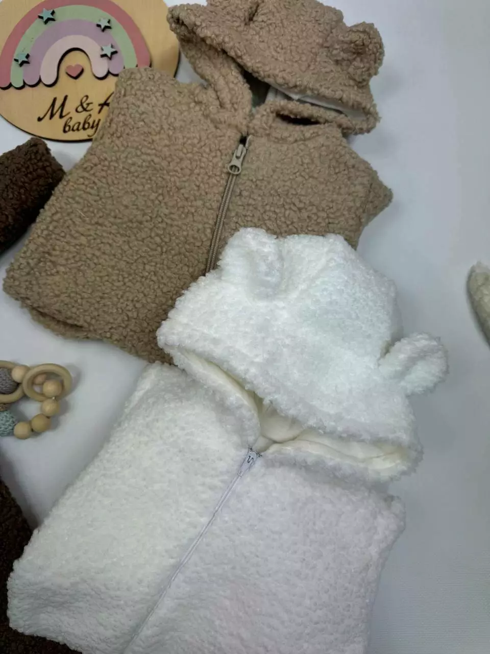 Тканина тедді бараш має чудову здатність зберігати тепло, що робить комбінезон ідеальним для холодних днів. М'який, ніжний до шкіри малюка, він стане надійним захистом від холоду та вітру. А зручна застібка дозволяє легко одягнути і зняти комбінезон без зайвих труднощів.