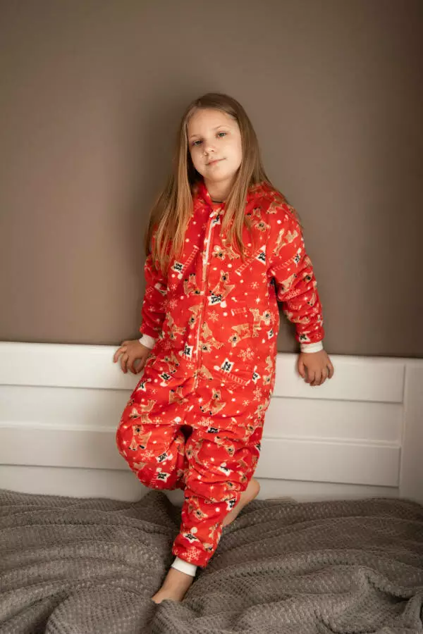 Дитячий теплий комбінезон-сліп кігурумі піжама German Volf червоний різдвяний принт 140 см зріст 24007