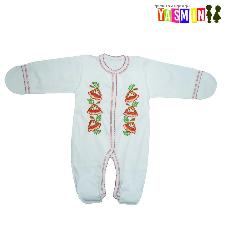 Комбинезон-вышиванка для новорожденных девочек (интерлок)