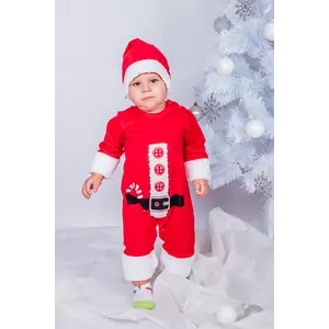 М'який, теплий комбінезон для новонароджених з однотонного начісу. Застібається на кнопках. Оригінальний накат і шапка у вигляді костюму Санти подарує святковий настрій всім оточуючим. Полотно - начіс (100% бавовна) при пранні дає усадку на 1-2 см. Колір може злиняти, не прати з білими речами.