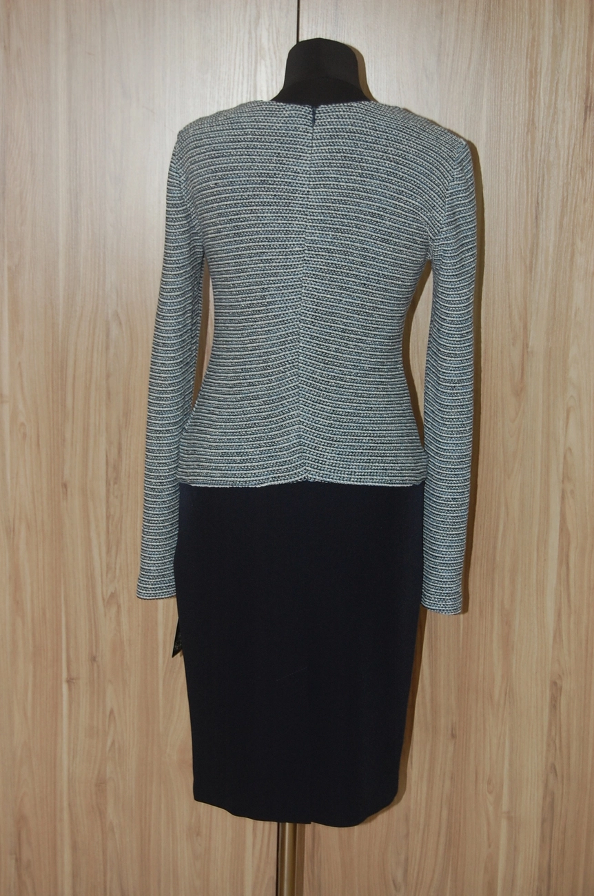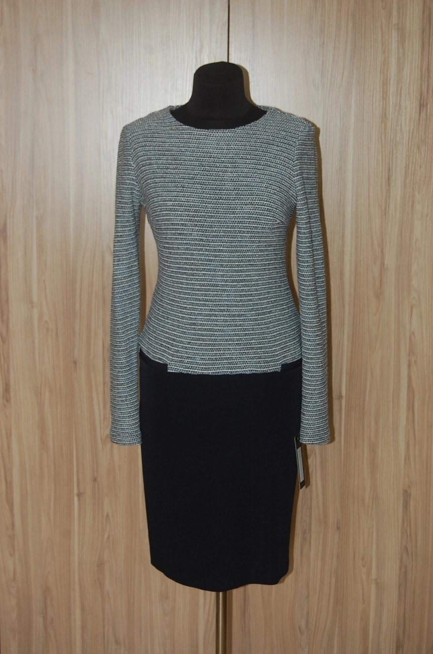 Комбінована сукня приталеного крою з кишенями. Довгий рукав, на спинці потайний замок, шліца. Склад: 48% Поліакрил,42% Бавовна, 7% Поліестер, 3% Віскоза, Контраст: 54% Віскоза , 43% Поліестер, 3% Еластан.