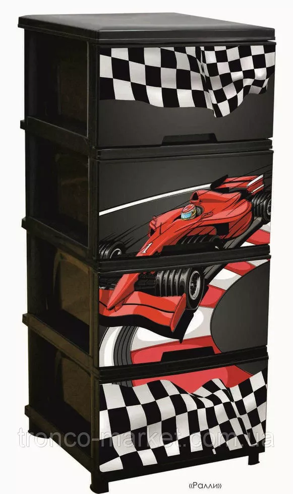 Новинка от украинского производителя АЛЕАНА - комод на четыре ящика с декором. Комод (фр. commode — «удобный») — предмет французской мебели с выдвижными ящиками для хранения одежды. Разработан с целью помочь вам грамотно организовать хранение вещей в вашем доме. ?зготовлен из качественного полипропилена, удобный и вместительный. ?спользуется как дополнение к основной мебели и к туалетному столику. В нем можно хранить хранить ювелирные украшения, косметику и другие необходимые вещи. Оптимально подобранный размер : высота 95,5 см, ширина 39,5 см, глубина 46,5 см , разнообразный декор и изысканные цвета на любой, даже самый требовательный вкус с легкостью впишется в любой интерьер. Для любителей классики подойдет - Ротанг или Дерево, для романтических натур - Париж или Лаванда, для маленьких девочек - Совы, Медведи,Девочки, для мальчиков -Ралли,Совы, Медведи. Каждыйнайдет для себя красивый дизайн. Правильно организованное хранение,при этом еще и радущее глаз гарантирует порядок в доме и в мыслях. Проверьте на себе! :)