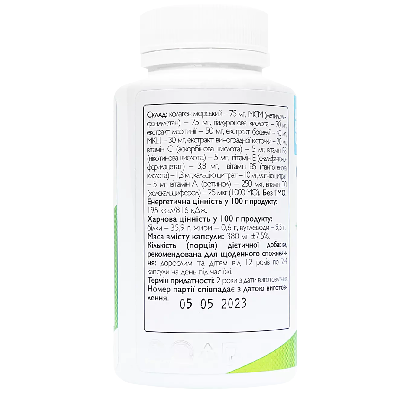 Колаген морський – 75 мг, MСM (метилсульфонілметан) – 75