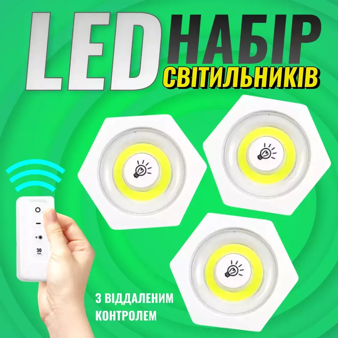 Наш комплект из 3 светодиодных лампочек на батарейках и пульта