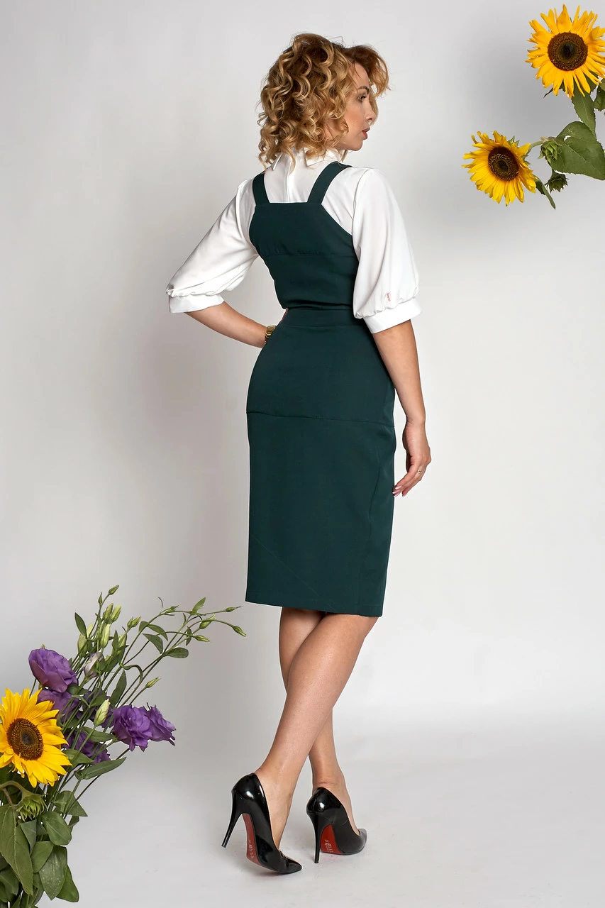 Комплект двойка (сарафан и блуза). Сарафан пошит из ткани высокого качества костюмка, блуза из ткани софт. Силуэт изделия приталенный. Крой сарафана прямой, что подчеркивает все достоинства фигуры. Такая модель сарафана идеально подойдет для офиса, а также для праздников.