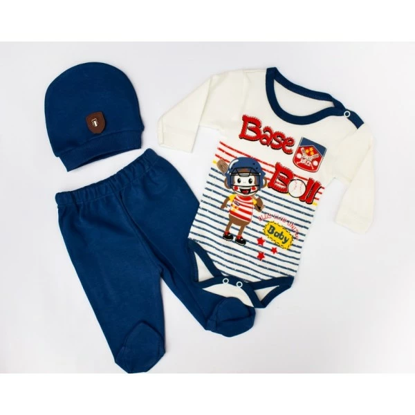 Милый костюмчик для малыша, такой наряд подойдет как для выписки из роддома, так и для повседневных прогулок. Комплект состоит из трех предметов, самых необходимых для вашей крохи: боди, шапочка и штанишки. Все вещи в комплекте из натуральной хлопковой ткани, что очень Важно для маленьких деток. Красивое сочетание цвета, мелкого принта и симпатичных апликаций делают этот комплект необыкновенным и оригинальным.
