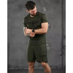 Підготуйтеся до літа з нашим стильним чоловічим комплектом, що містить комфортні шорти та футболку. Шорти виготовлені з легкого дихаючого матеріалу, який ідеально підходить для активного способу життя. У них зручний пояс на зав'язках для ідеальної посадки. Футболка виготовлена з поліестеру, що забезпечує еластичність і комфорт. Вона має стильний принт на грудях і чудово поєднується із шортами.