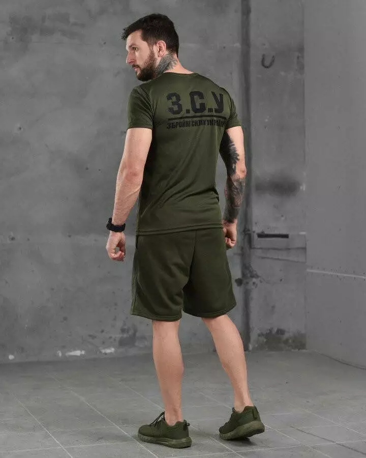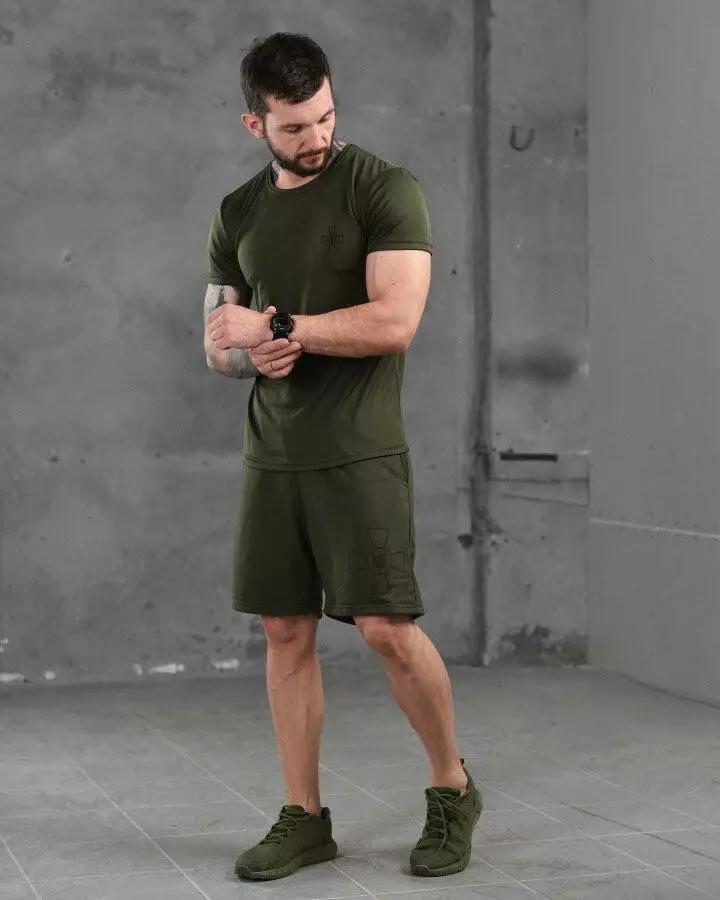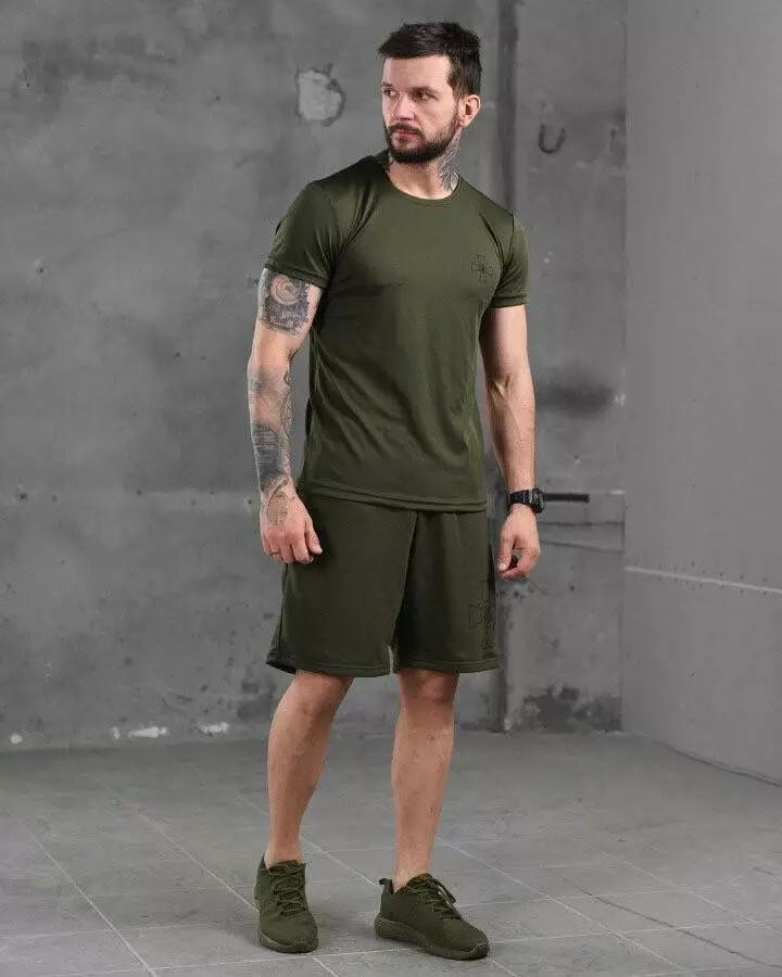 Підготуйтеся до літа з нашим стильним чоловічим комплектом, що містить комфортні шорти та футболку. Шорти виготовлені з легкого дихаючого матеріалу, який ідеально підходить для активного способу життя. У них зручний пояс на зав'язках для ідеальної посадки. Футболка виготовлена з поліестеру, що забезпечує еластичність і комфорт. Вона має стильний принт на грудях і чудово поєднується із шортами.